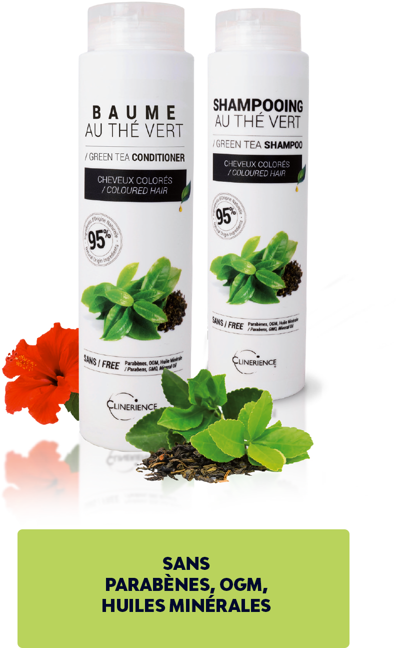 Shampoing et baume au thé vert pour cheveux colorés